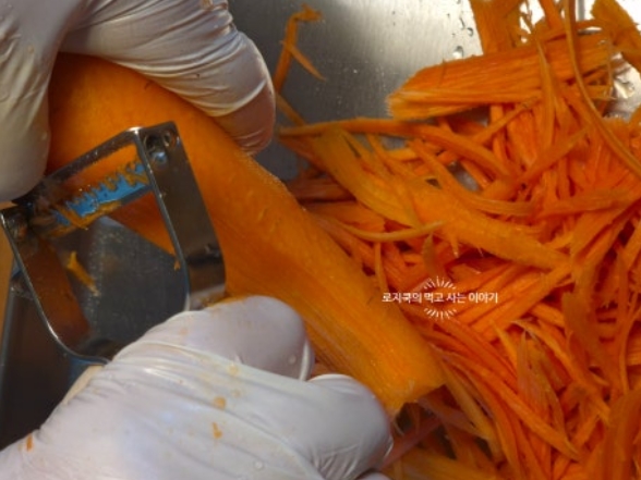 5. 당근과 양배추를 채칼로 밀어서 준비해 줍니다.