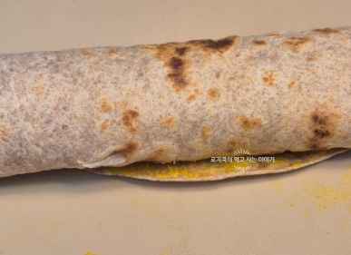 6. 마른 팬에 또띠아를 올리고 적당히 노릇하게 구워줍니다. 뒤집어가며 구워줍니다.