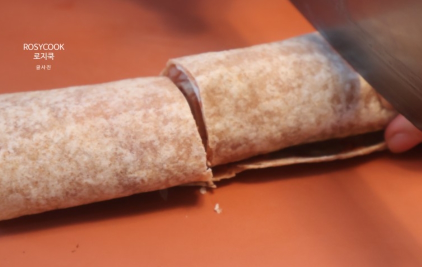5. 돌돌 말아줍니다. 먹기 좋게 반으로 썰어줍니다.
