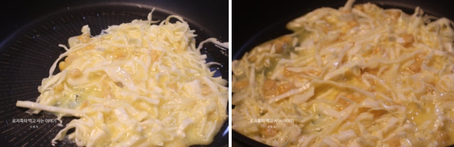 1. 양배추를 1줌 정도 나오게 채 썰어줍니다.