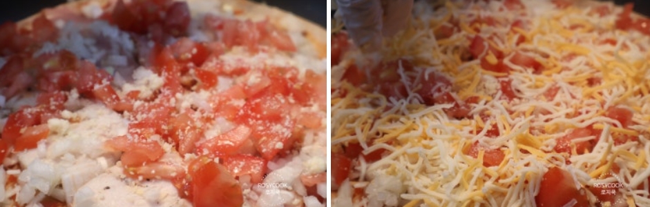 6. 파마산치즈가루를 뿌려주고, 슈레드치즈를 전체적으로 뿌려줍니다.