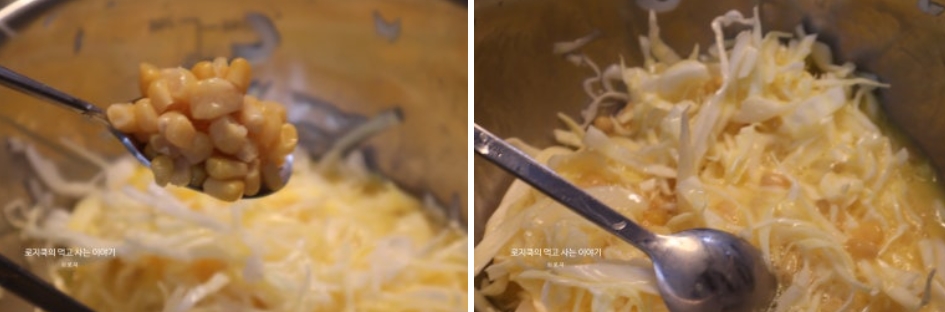 3. 2번에 캔옥수수를 넣고 잘 버무려줍니다.