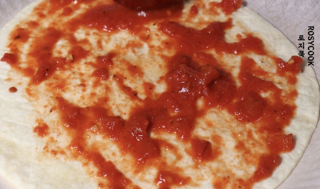 이렇게 베이스를 만들면 또띠아 피자 만드는법의 절반은 끝난 셈이에요.