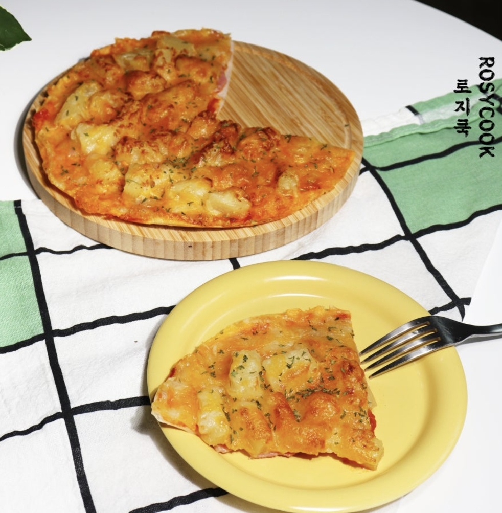 통조림 파인애플을 사용하면 손질도 편하고 단맛도 더해져 피자와 잘 어울려요.