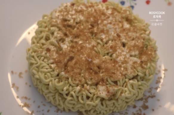 1. 라면에 마요네즈 설탕 바르기