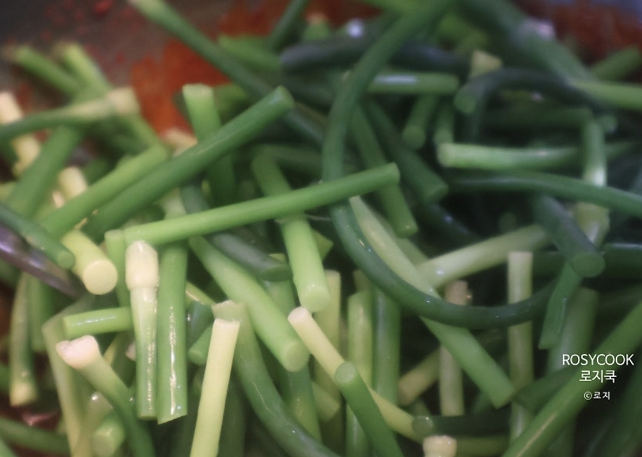 식욕을 돋우는 고추장 양념에 마늘쫑의 알싸한 풍미가 더해져 정말 매력적인 맛이에요.