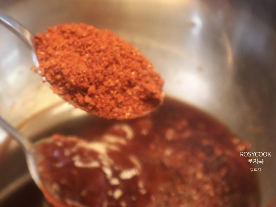 고춧가루 2큰술을 모두 넣고 고루 섞어주세요.