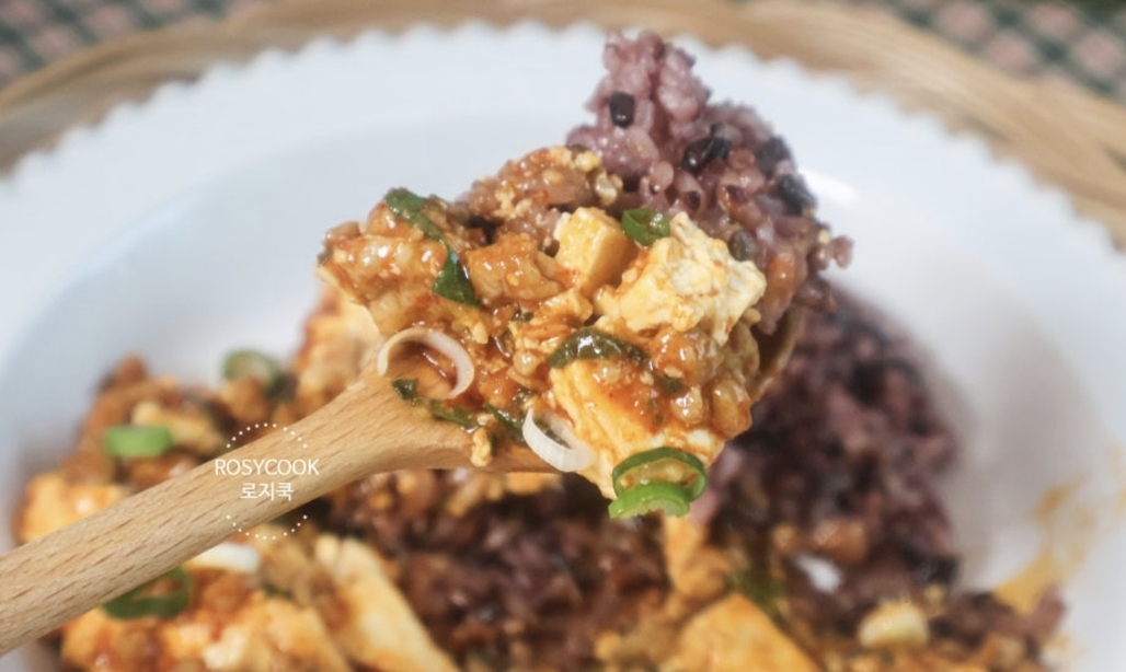 밥에 취향껏 마파두부를 올려서 슥슥 비벼드시면 됩니다. 만능 양념장을 만들어두고 생각날 때마다 만들어서 드시면 되고요. 한국인 입맛에 맞는 마파두부 양념 소스이니, 이렇게 마파두부 덮밥 만들어서 드셔보시길 바랍니다.