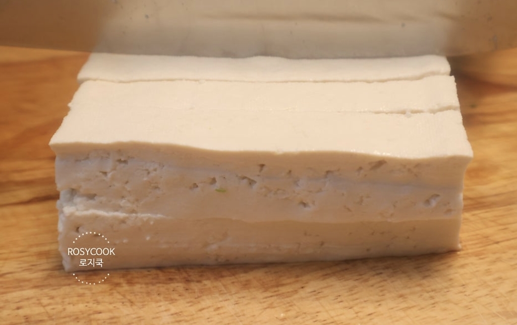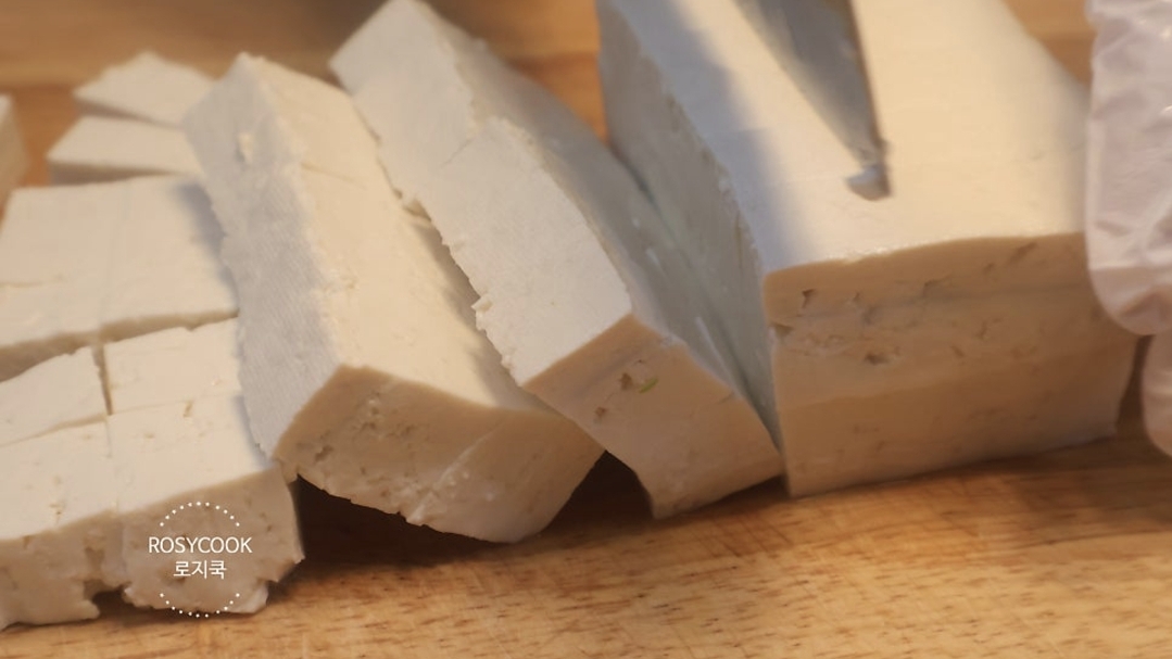 3. 두부를 사방 1.5cm 정도로 깍둑썰기해 줍니다.