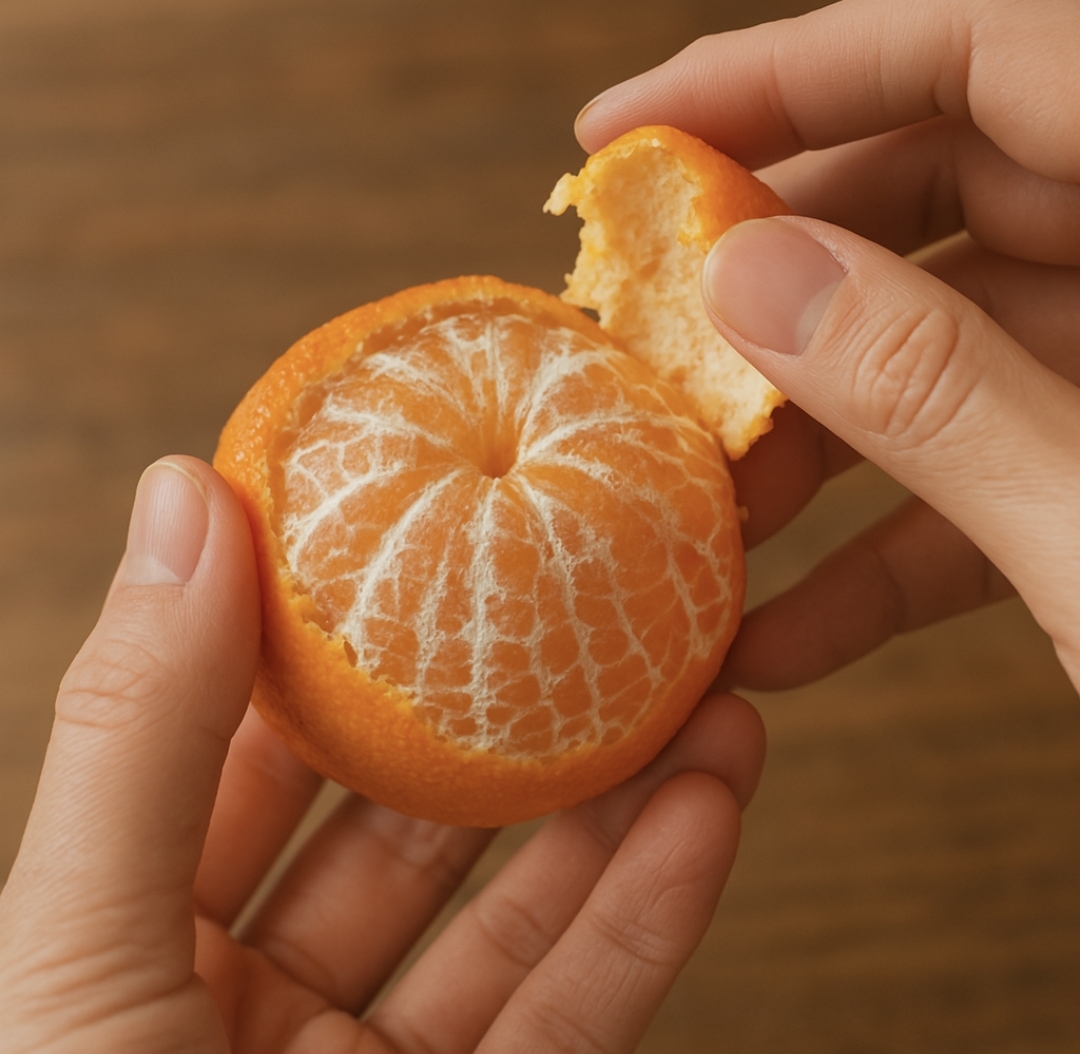 한편 오렌지는 이름만 비슷할 뿐, 사실 만다린이나 감귤과는 계보가 다른 과일이에요. 껍질이 두껍고 단단해서 손으로 벗기기 어렵고, 크기도 훨씬 크죠. 씨가 있는 품종도 있어서 먹을 땐 조금 불편할 수 있어요.