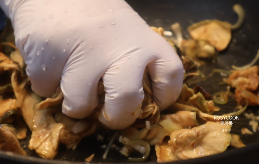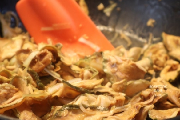 10. 식용유 1 큰 술을 살짝 둘러주시고, 양념이 밸 때까지 달달 볶아줍니다.