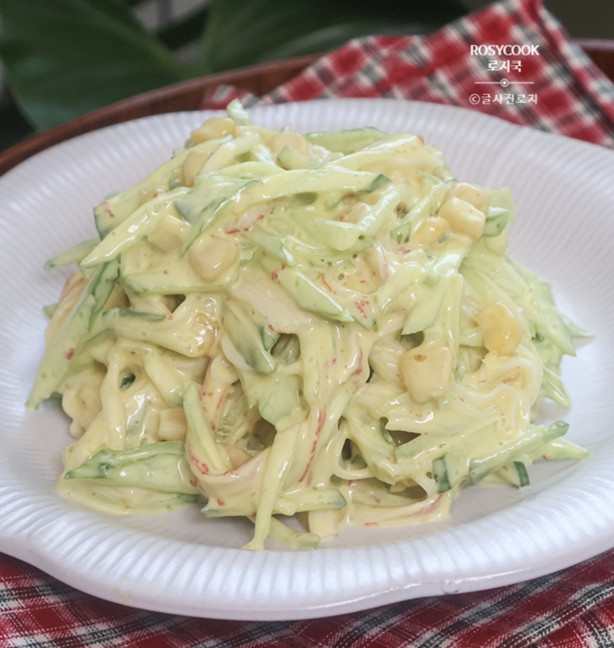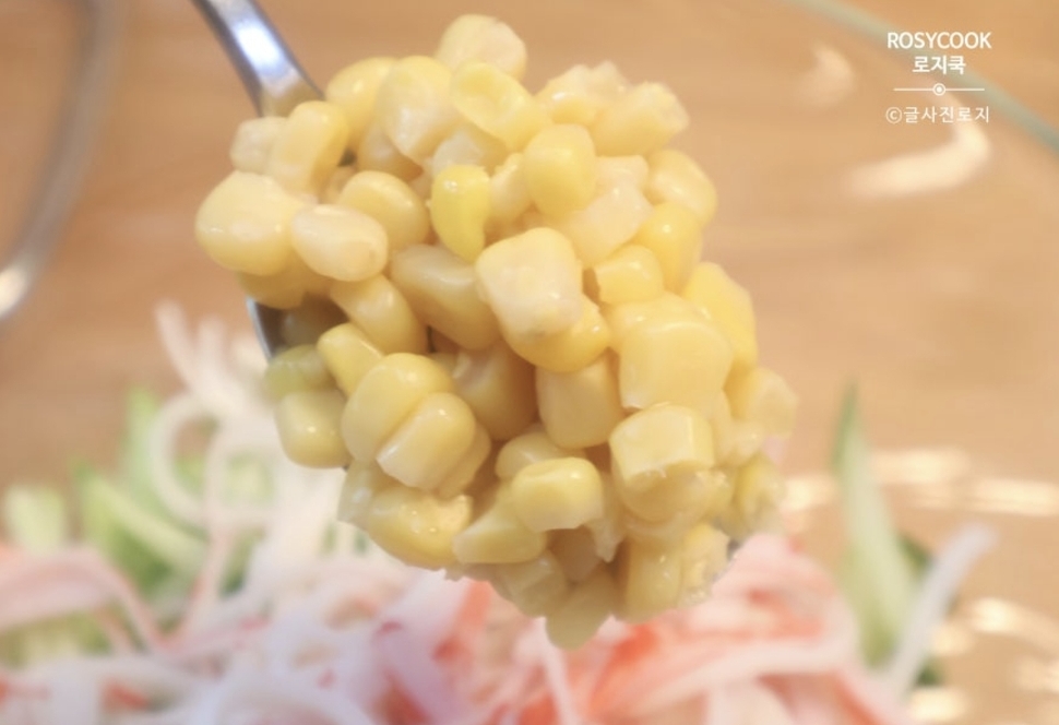 부드러운 크래미와 아삭한 오이, 톡톡 터지는 옥수수까지 어우러져 정말 맛있어요.