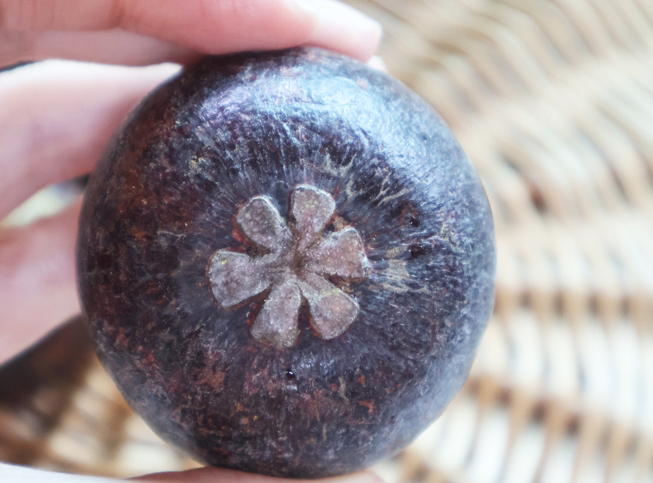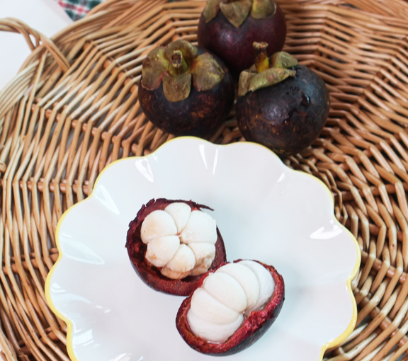 망고스틴의 색깔은 짙은 보라색인 것을 골라주셔야 합니다. 붉은빛이 도는 망고스틴의 경우 새콤한 맛이 납니다. 짙은 보라색일수록 당도가 높은 망고스틴이니 이를 참고해 주세요.