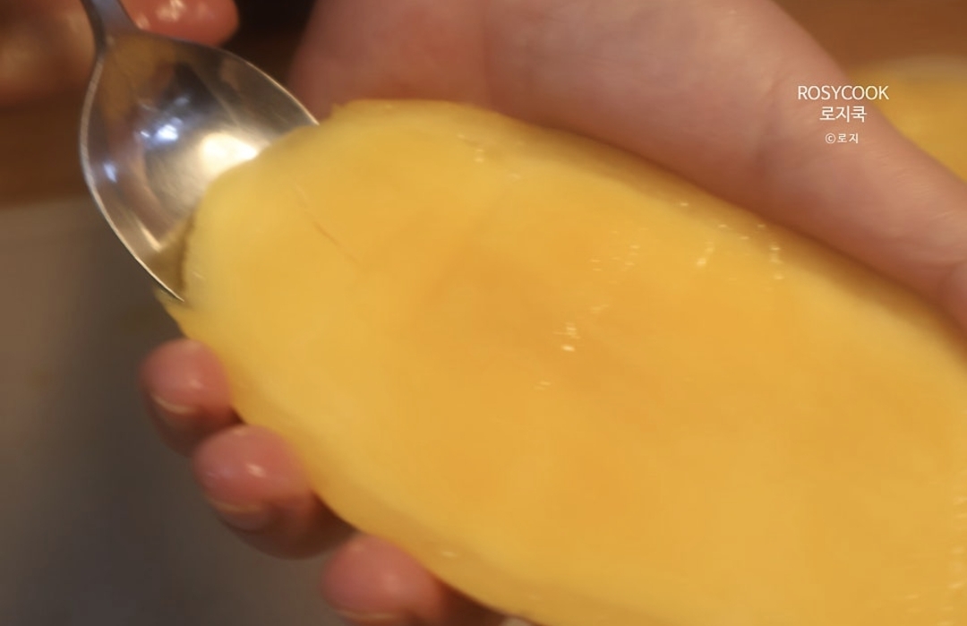 9. 껍질과 과육 사이로 숟가락을 넣어서 밀어가며 과육을 분리해 주셔도 됩니다.