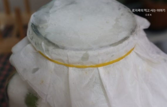 • 병 위를 한지나 면 보자기로 덮고 고무줄로 고정