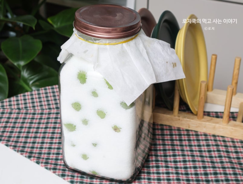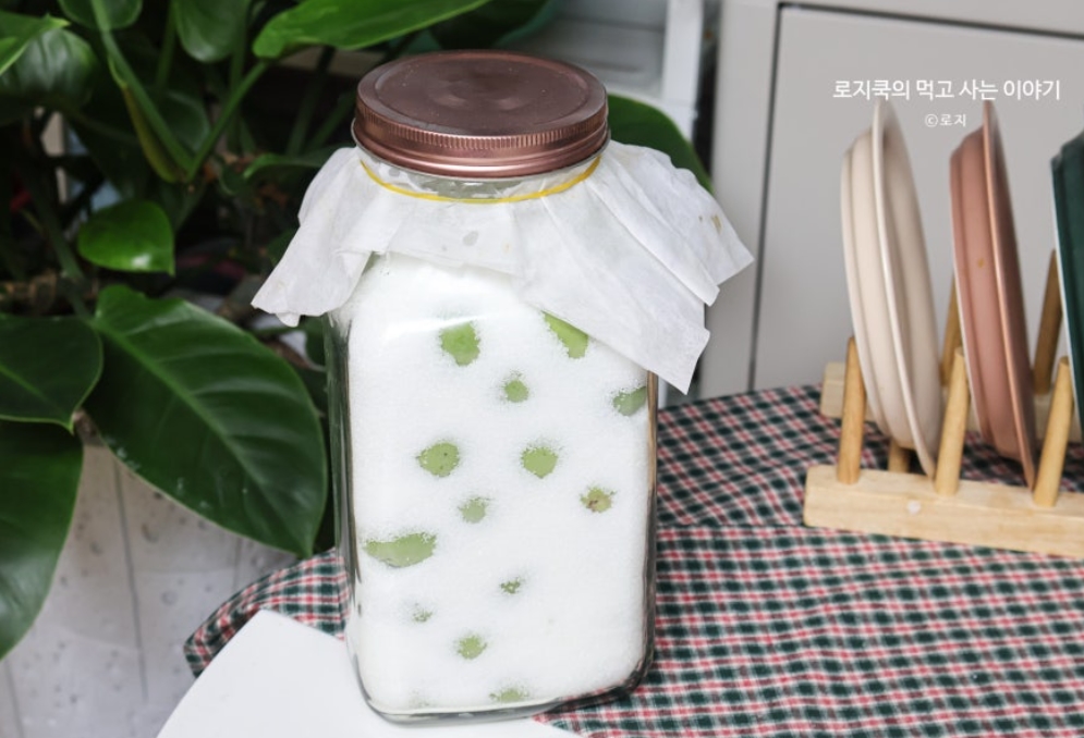 올리고당은 빠른 당 발효를 도와주기 때문에, 설탕보다 숙성 시간이 단축될 수 있어요. 단, 꼭 윗부분에 부어주세요!