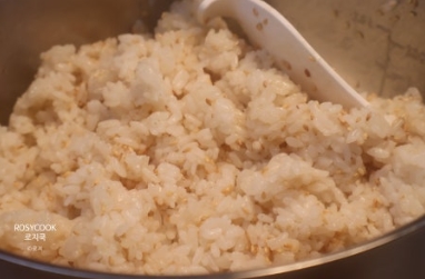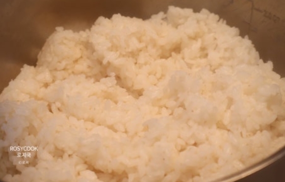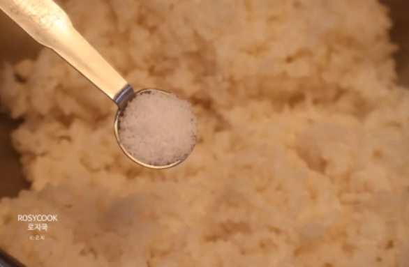 10. 밥 4 공기에 소금을 넣고 전체적으로 뿌려줍니다.