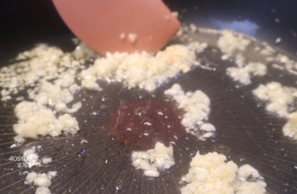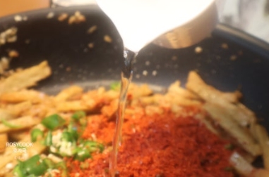 9. 고춧가루를 넣고 물을 부어준 후, 볶아줍니다.
