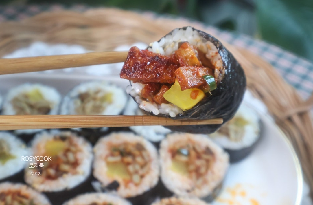 오늘은 간단하게 한 끼 식사로 먹기 좋은 매콤 어묵김밥 만들기 해봤습니다. 백종원 매운 불어묵김밥 레시피 입니다. 어묵과 단무지, 어묵조림만 들어가는 간단한 조합이라 쉬운 김밥 레시피가 필요하신 분들께 딱입니다.