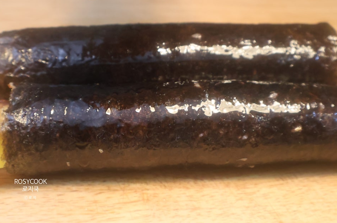 16. 동일하게 돌돌 말아서 고정해 주고, 모두 참기름을 발라줍니다.