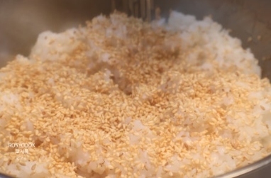 11. 깨를 전체적으로 뿌려준 후, 참기름을 넣어서 잘 비벼줍니다.