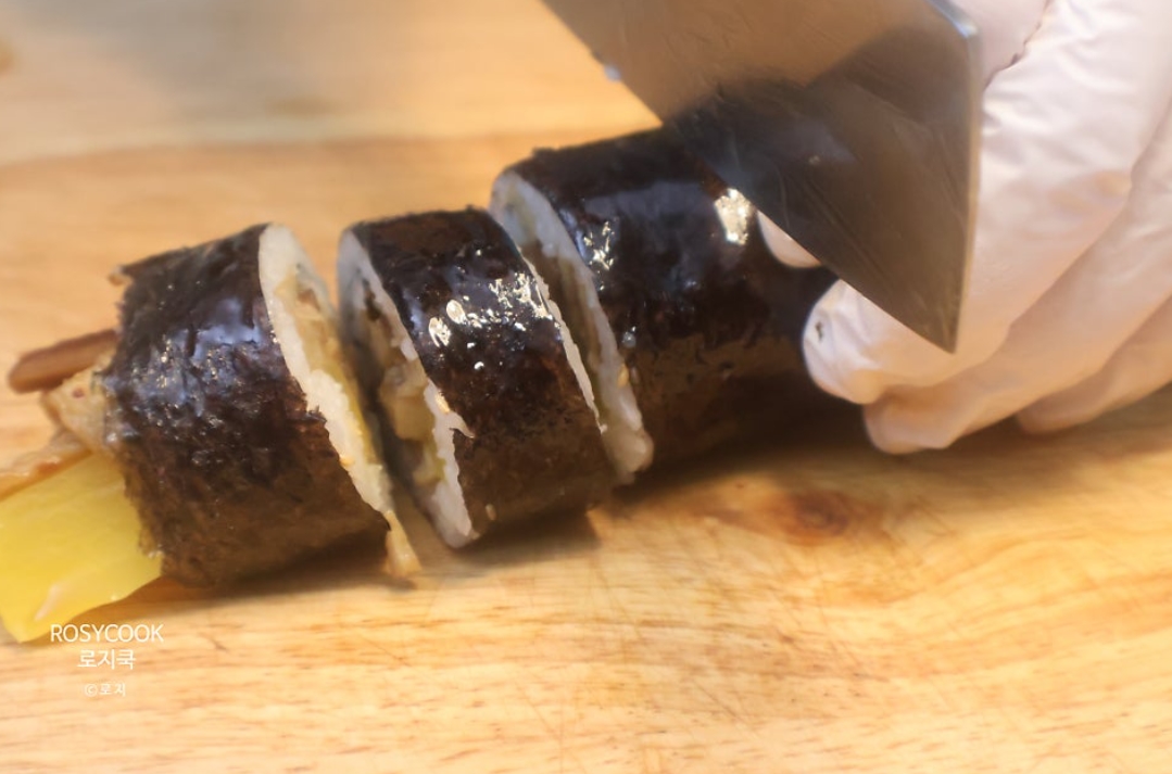 14. 돌돌 말아준 후, 김발로 다시 감아서 꽉꽉 눌러 고정해 줍니다.