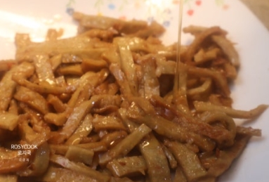 7. 양념이 밸 때까지 볶다가 반만 접시에 덜어둡니다. 참기름을 둘러 마무리해줍니다.