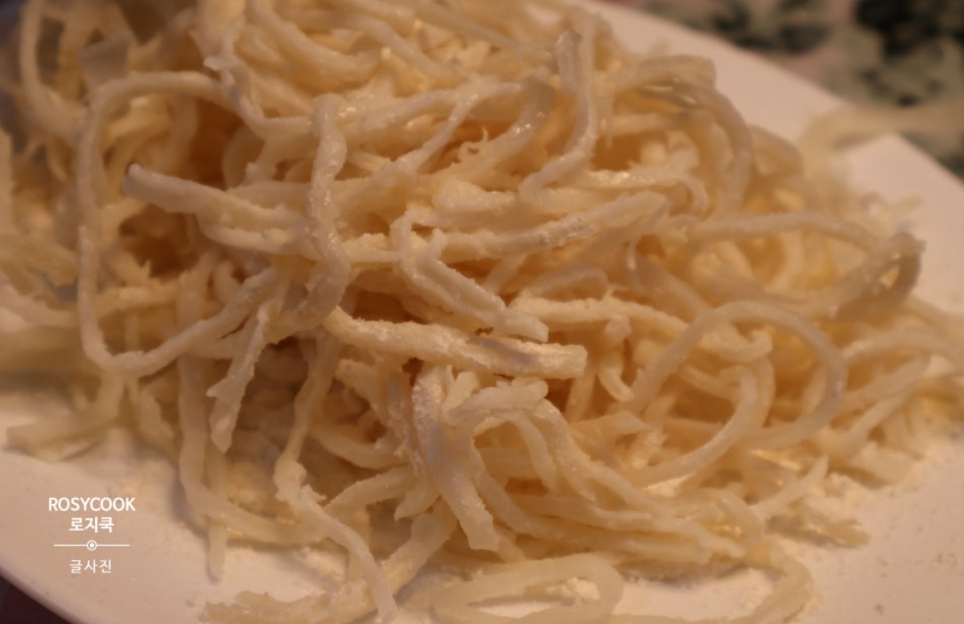 오늘은 맥주안주 베스트 추천 레시피 소개해 보겠습니다. 진미채튀김 만들기 입니다. 백진미채를 활용해 봤습니다. 간단한 튀김반죽을 만들어서 오징어채를 담가서 튀겨주시면 쫄깃하면서도 바삭한 식감이 좋습니다.