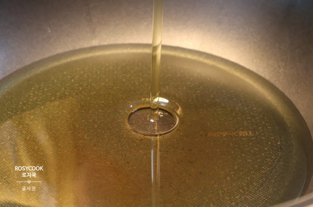 5. 식용유를 넉넉하게 부어준 후, 기름 온도를 올려줍니다.