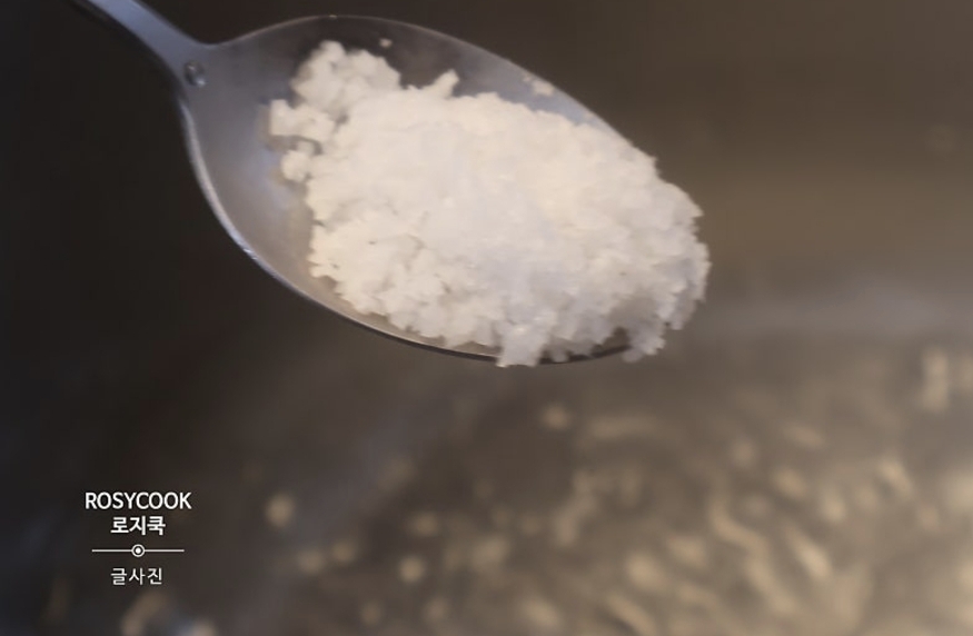 2. 끓는 물에 소금 1 큰 술을 넣어줍니다.