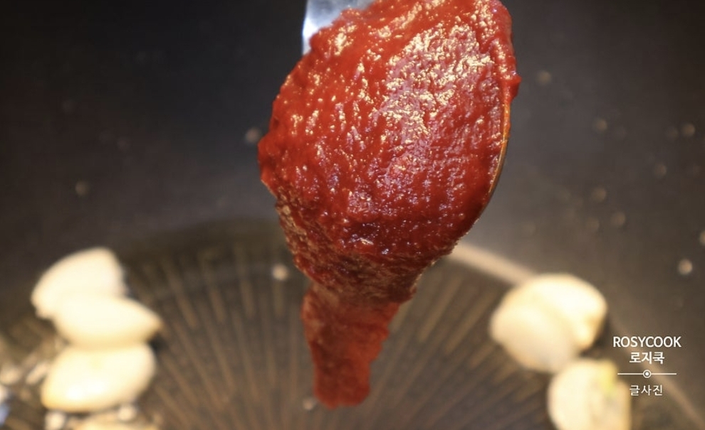 9. 고추장 1 큰 술과 진간장 2 큰 술을 넣어줍니다.