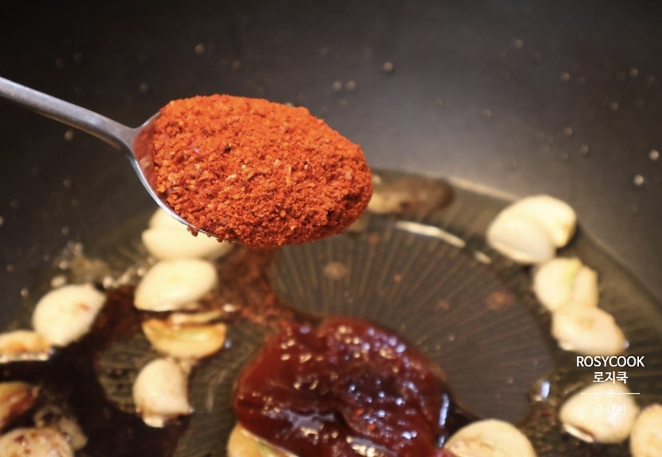 10. 매실청 1 큰 술과 고춧가루 1 큰 술, 올리고당 1 큰 술을 넣어줍니다.
