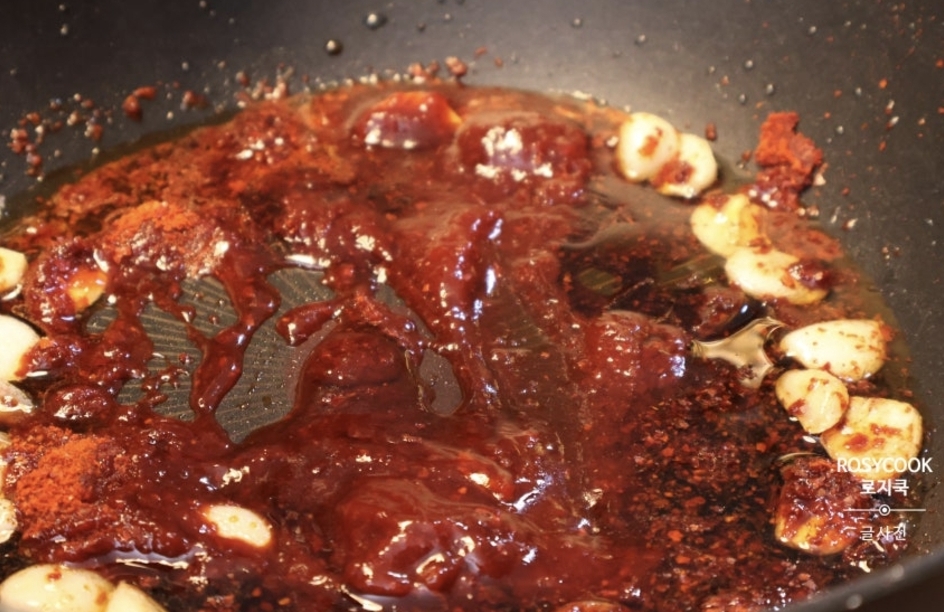9. 고추장 1 큰 술과 진간장 2 큰 술을 넣어줍니다.