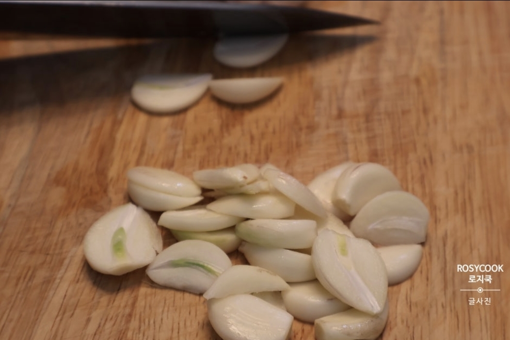 2. 마늘 6쪽을 얇게 썰어줍니다.