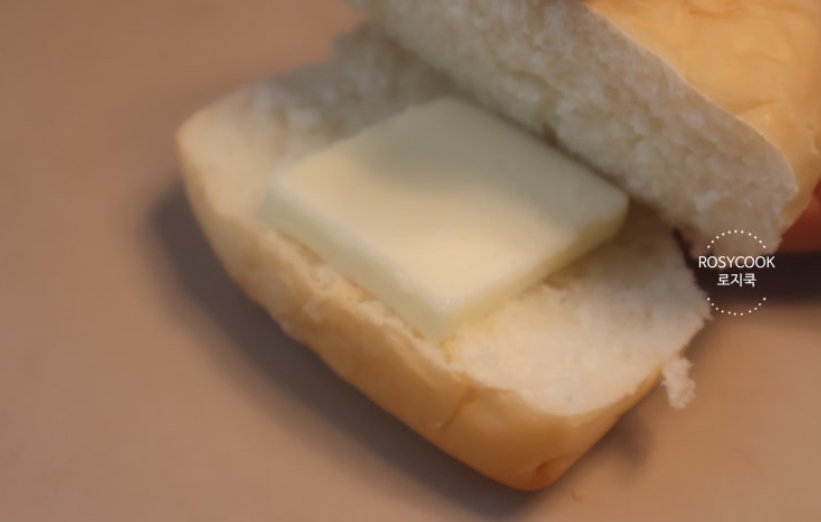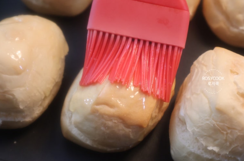 5. 녹여둔 가염버터를 모닝빵의 표면에 펴 발라줍니다.