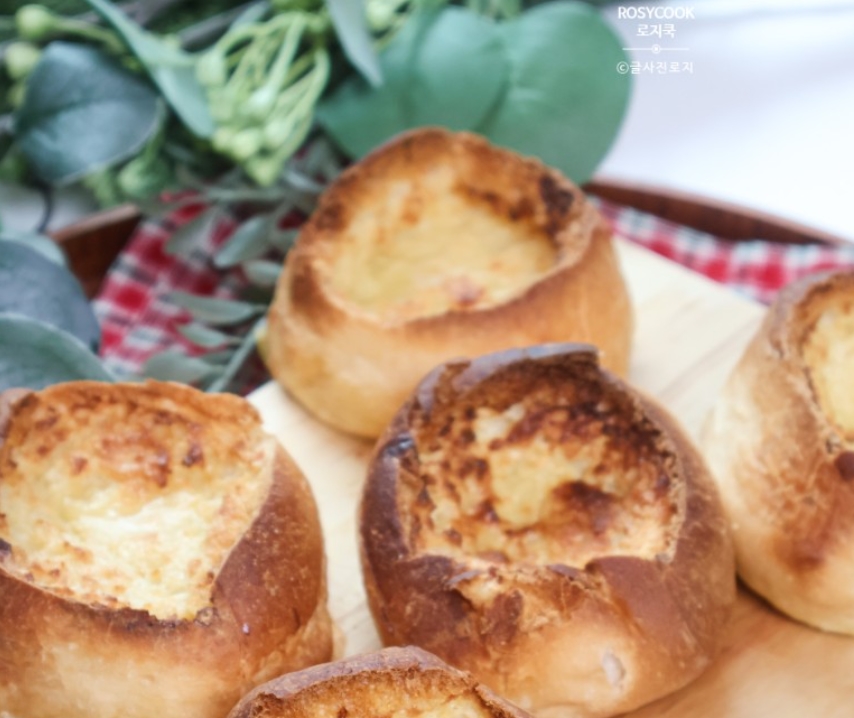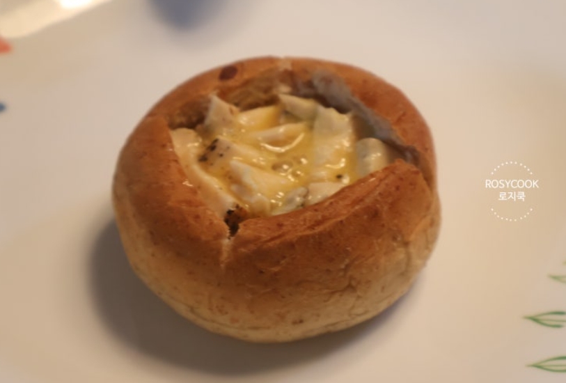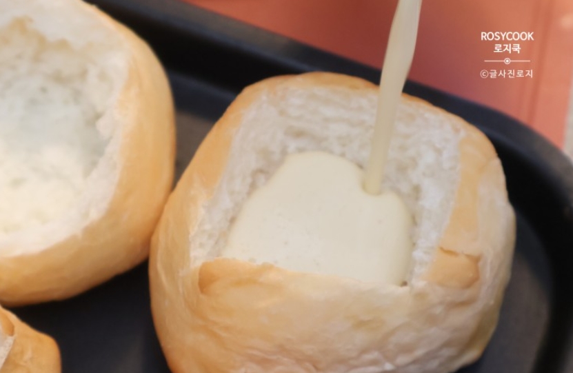 3. 파둔 모닝빵에 준비해둔 3번을 부어줍니다.