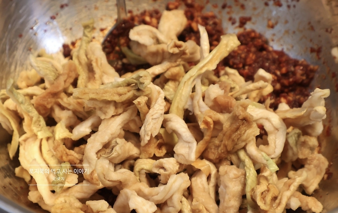 가볍게 다시 한 번 버무리면 윤기 흐르는 무말랭이무침 완성!