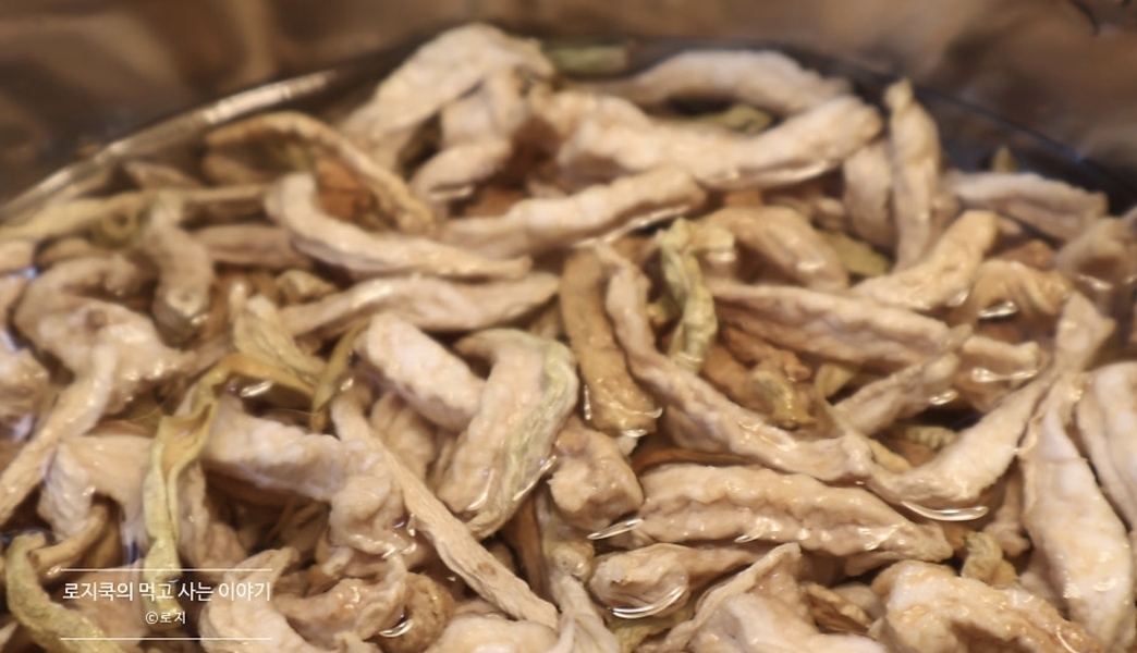 찬물에 담가두면 부드러워지면서도 특유의 오도독한 질감이 살아남습니다.