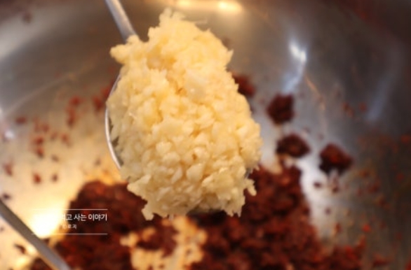 6. 간 마늘, 맛술(미림)을 넣어서 잘 섞어줍니다.
