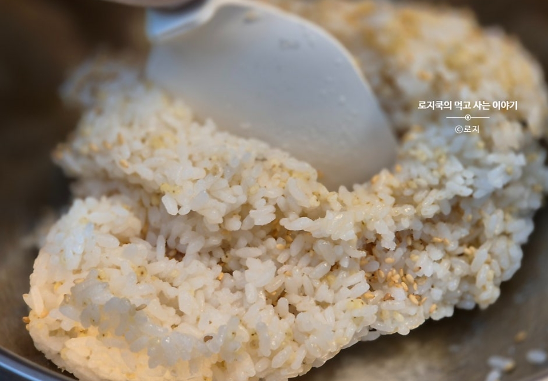 8. 깨를 전체적으로 뿌린 후, 비벼줍니다.