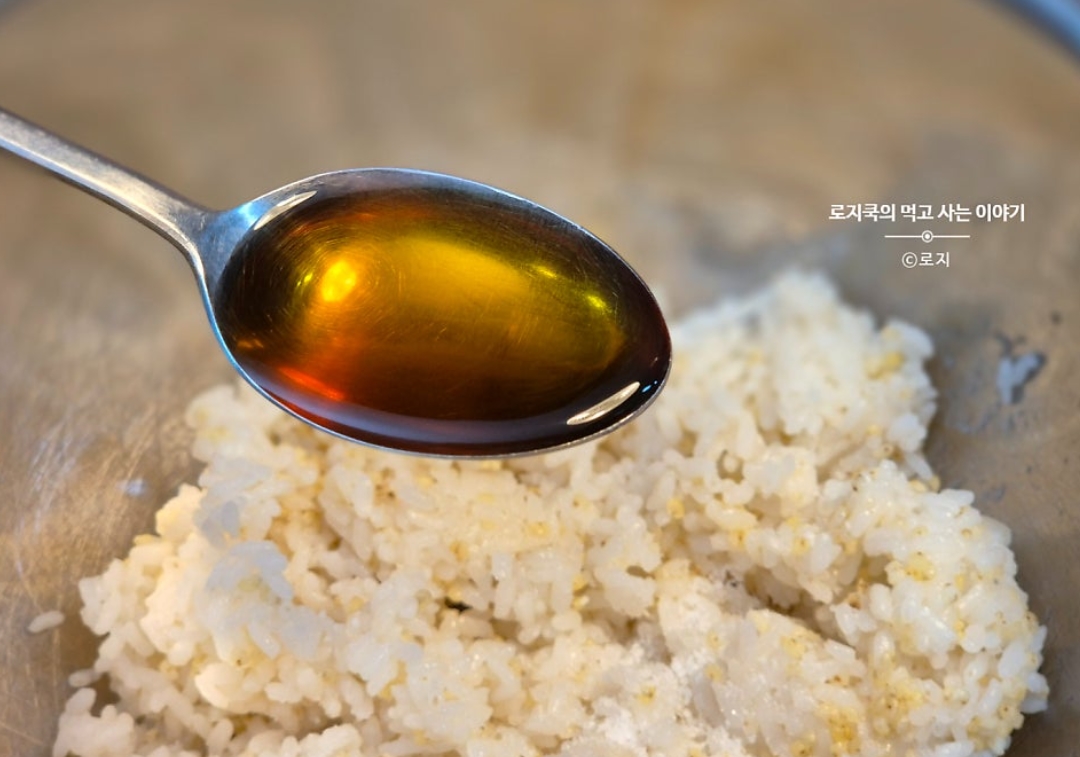 6. 밥 2공기에 소금 1/2 티스푼을 넣어줍니다.