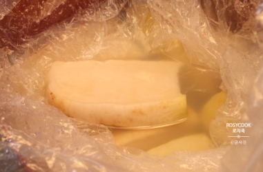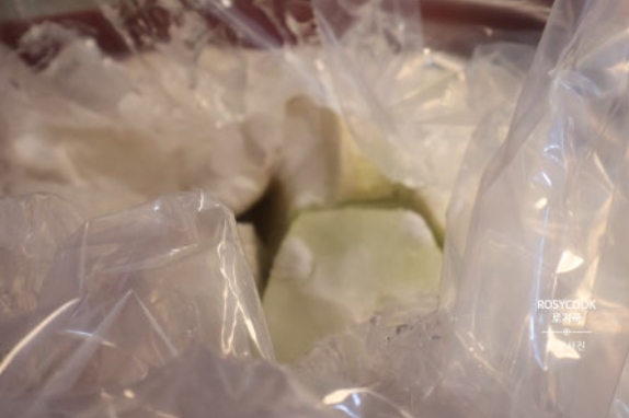 6. 김장 비닐을 꽉 감싸서 일주일 정도 실온에 둡니다.