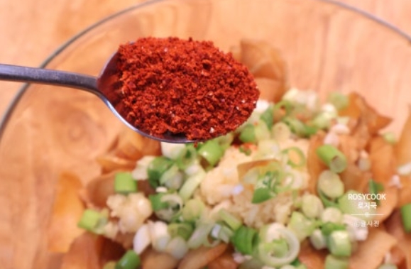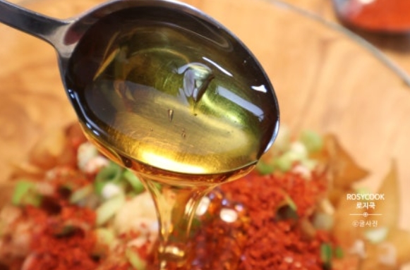 15. 고춧가루와 올리고당을 넣어줍니다.