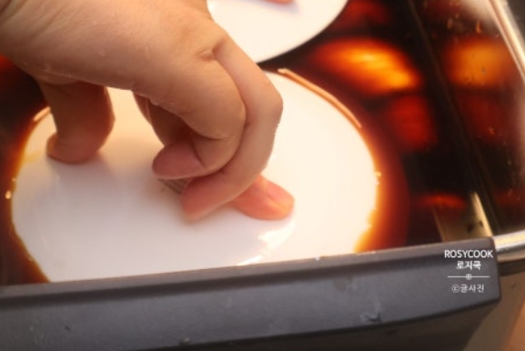 9. 진간장, 매실청, 소주를 부어줍니다.