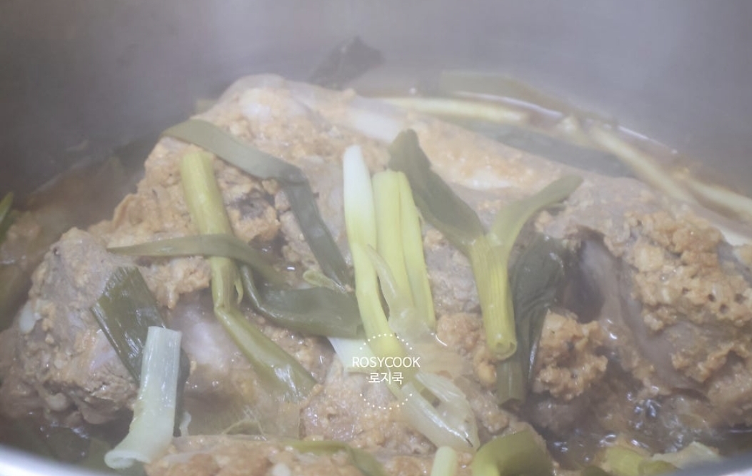 고기의 양이 있었기 때문에 이 정도 삶았고, 40분 ~ 1시간 사이로 조절해 주시면 됩니다. 젓가락으로 찔러봤을 때 쑥 들어간다면 잘 익은 겁니다.