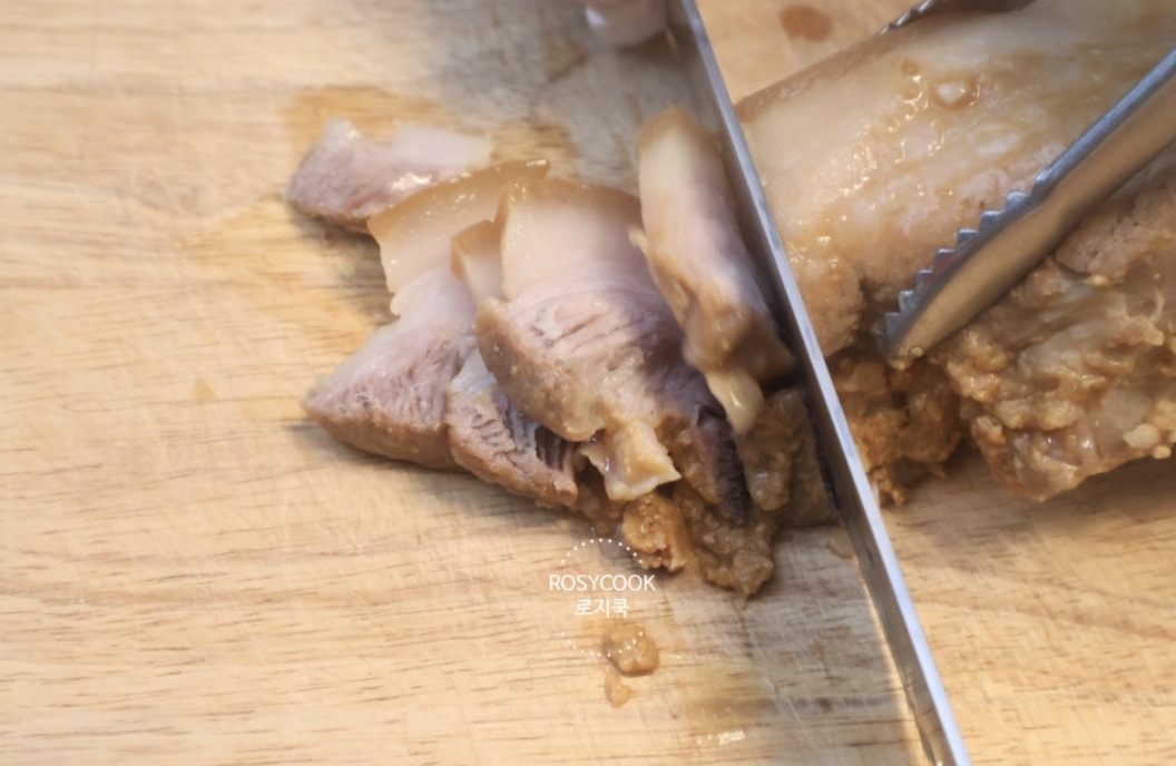 물에 담가서 끓이지 말고, 이렇게 무수분 수육 돼지 앞다리살 수육 삶아서 드셔보시길 바랍니다.