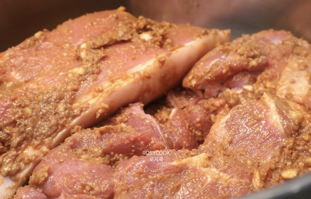 4. 앞다리살 1894g을 골고루 발라줍니다. 1 ~ 2시간 전에 미리 발라두고 양념이 밸 때까지 두면 더 좋습니다.