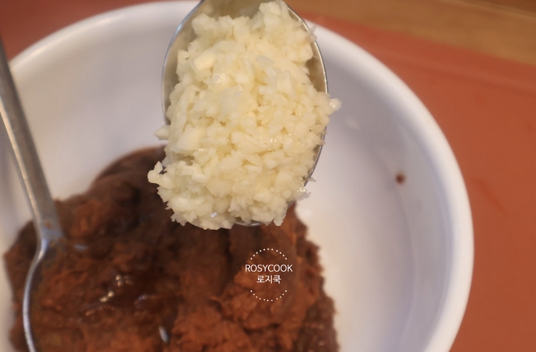 2. 간 마늘 2 큰 술을 넣어서 잘 섞어줍니다.