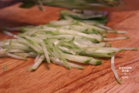 5. 오이를 채 썰어줍니다.