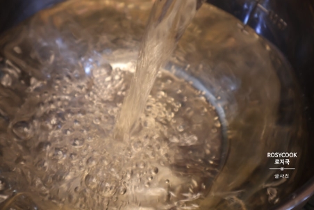 7. 냉수를 붓고, 국간장을 넣어줍니다.